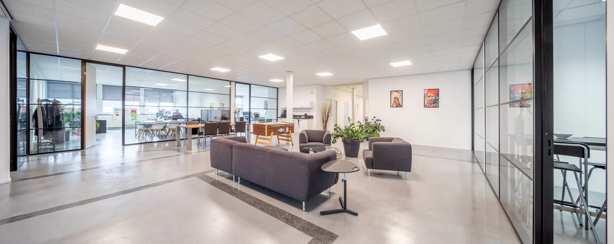 Centraal kantoor met toegang 3 kleinere kantoren voor bespreking, opslag of kantine